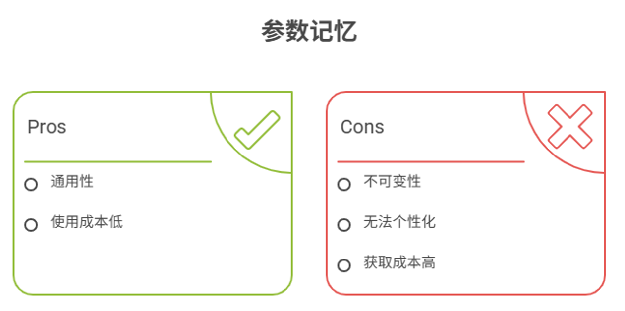 - 参数记忆不可控:很难让模型稳定记住某个用户的偏好,也很难精准删除某条记忆。